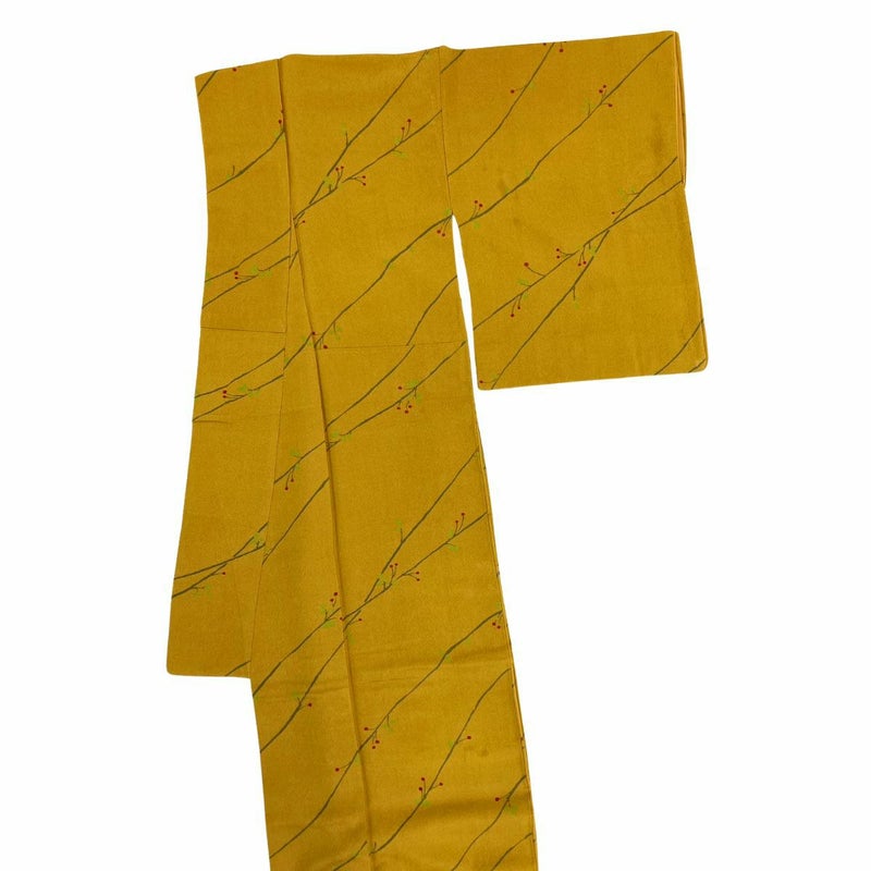 小紋 枝と樹の実 山吹茶色 正絹 着物 リサイクルのお品です。