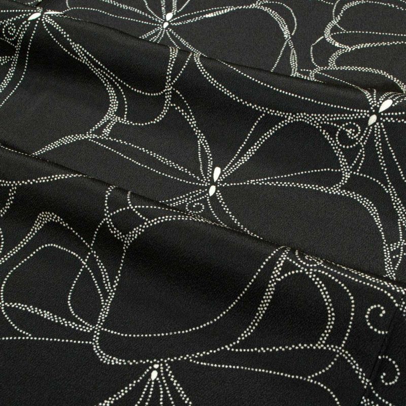黒地に白の蝶が舞う、洗練されたデザインの単衣の小紋です。