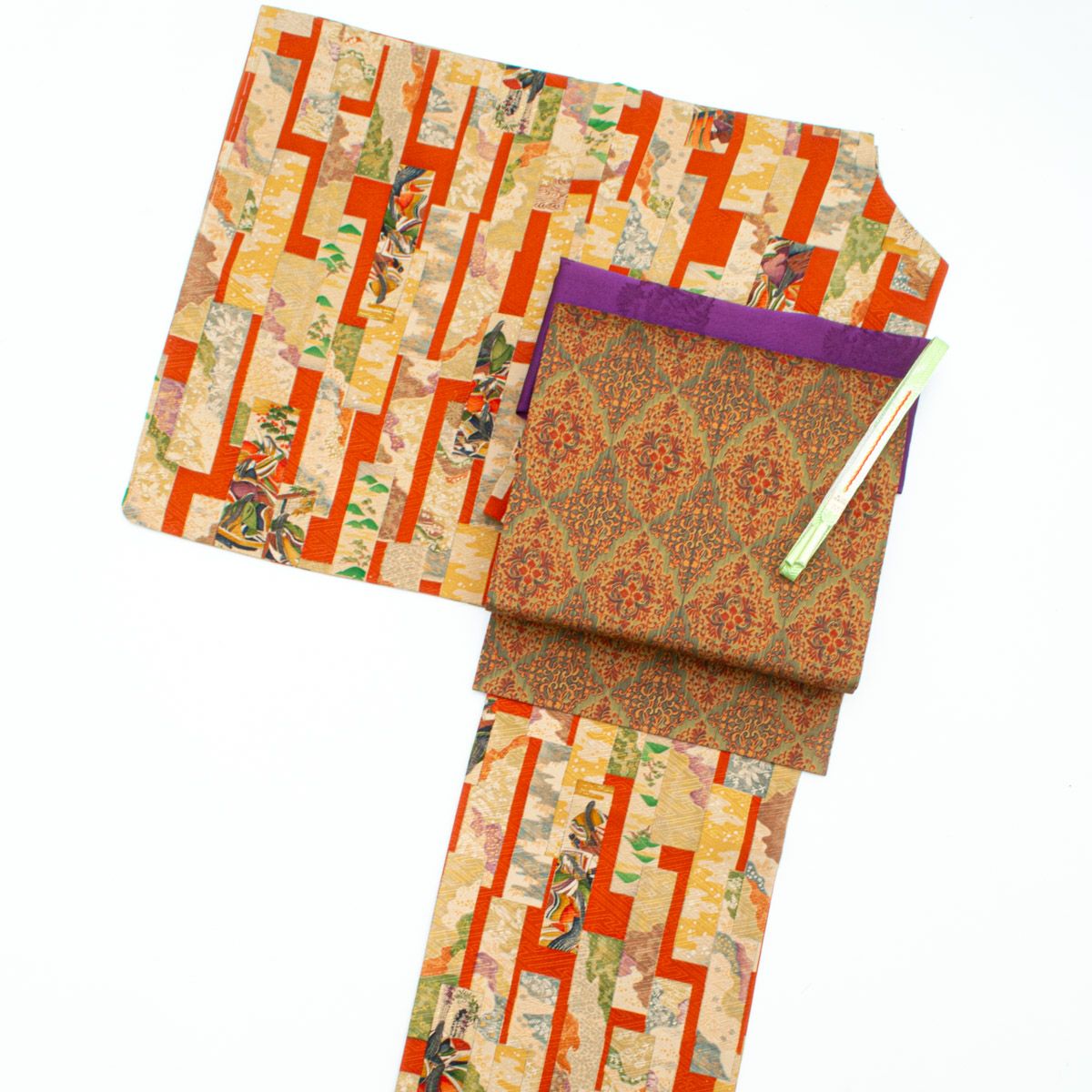 他の画像を見る 【コーディネート】小紋 短冊 王朝風 柿色 マルチカラーと名古屋帯 オリエンタル 花菱 灰緑 赤茶色 九寸のコーデ 13 新入荷 当店特別価格 ¥ 42,900 税込 カートに入れる お気に入りに登録する