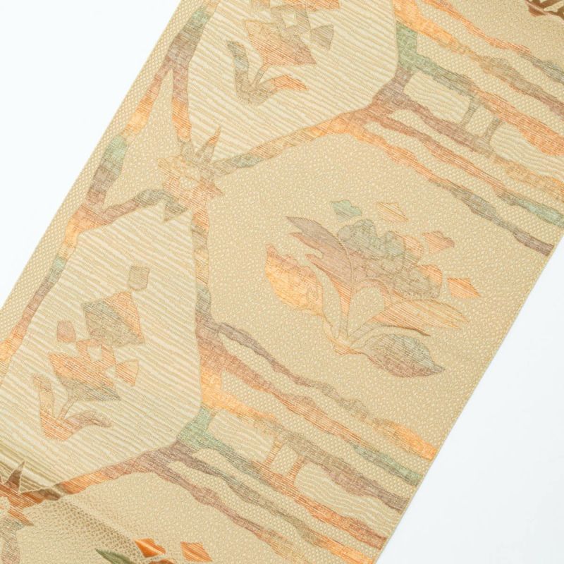 博多織のしなやかな張りと光沢が美しい、モダンな抽象柄の名古屋帯です。