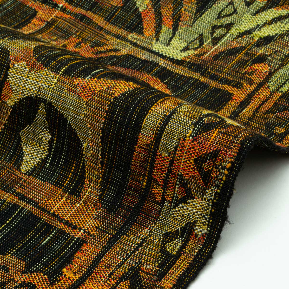 橙や黒や深緑色を基調としたマルチカラーの配色が印象的で、装いに彩りと個性を添えてくれます。