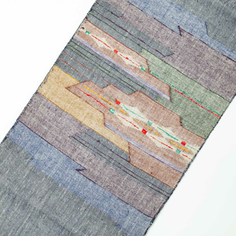 【未使用】名古屋帯 真綿織 幾何学柄 グレー マルチカラー 八寸 正絹 リサイクル