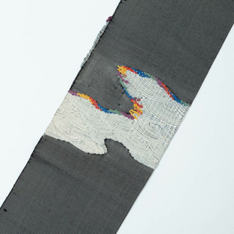 落ち着いた色合いながらもマルチカラーの色糸のアクセントがさりげない華やぎを生み、幅広い小紋や紬と好相性です。