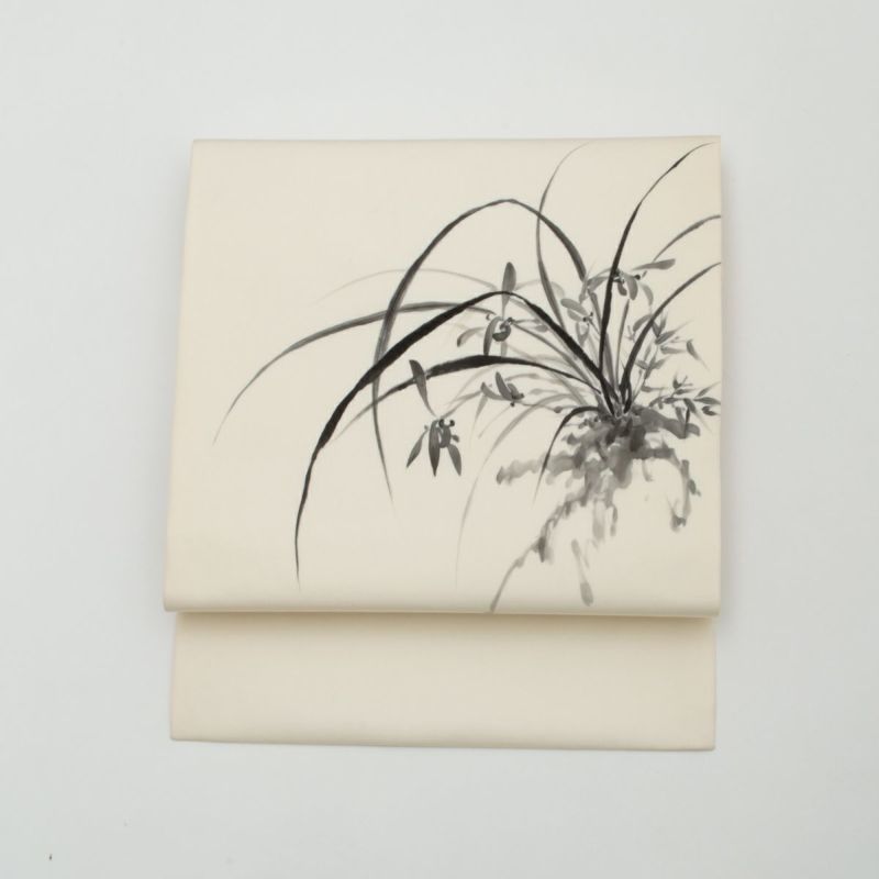 しなやかな塩瀬地に、気品漂う蘭の花を描いた名古屋帯です。