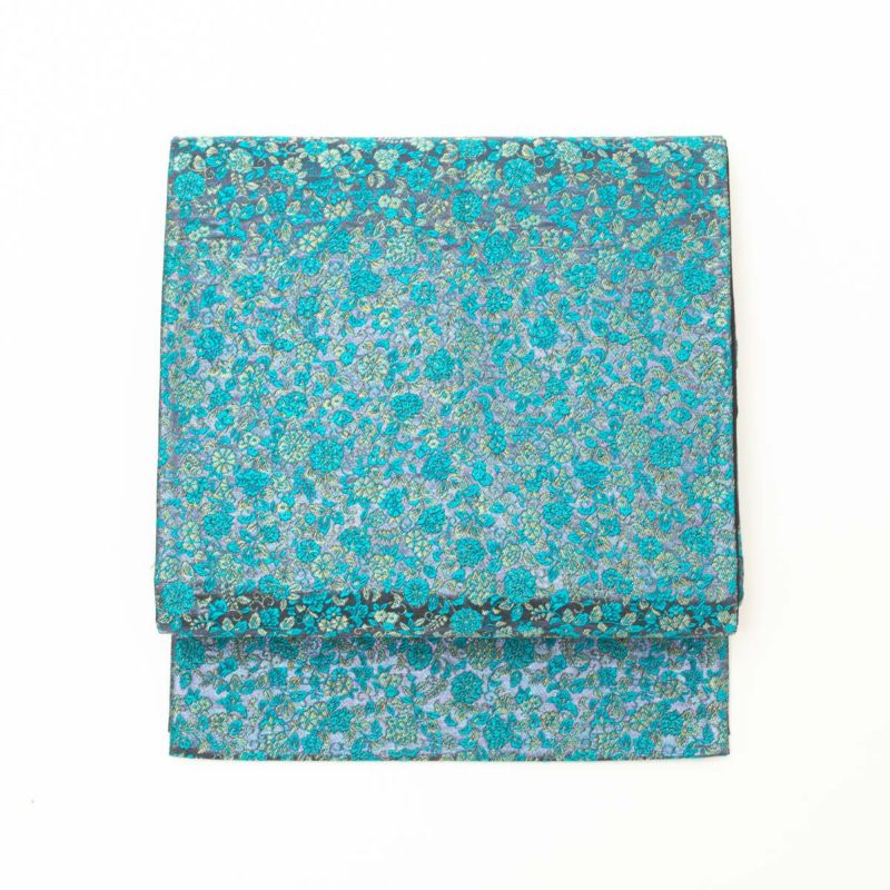 洒落袋帯 花唐草文様 青緑色 正絹のお品です。