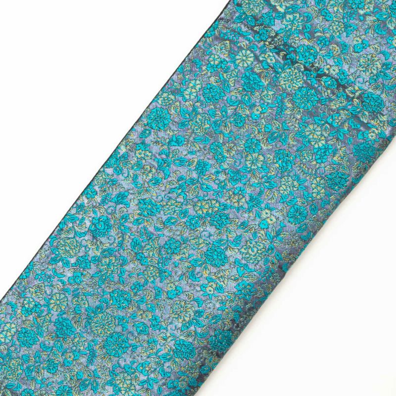 洒落袋帯 花唐草文様 青緑色 正絹 リサイクル 18