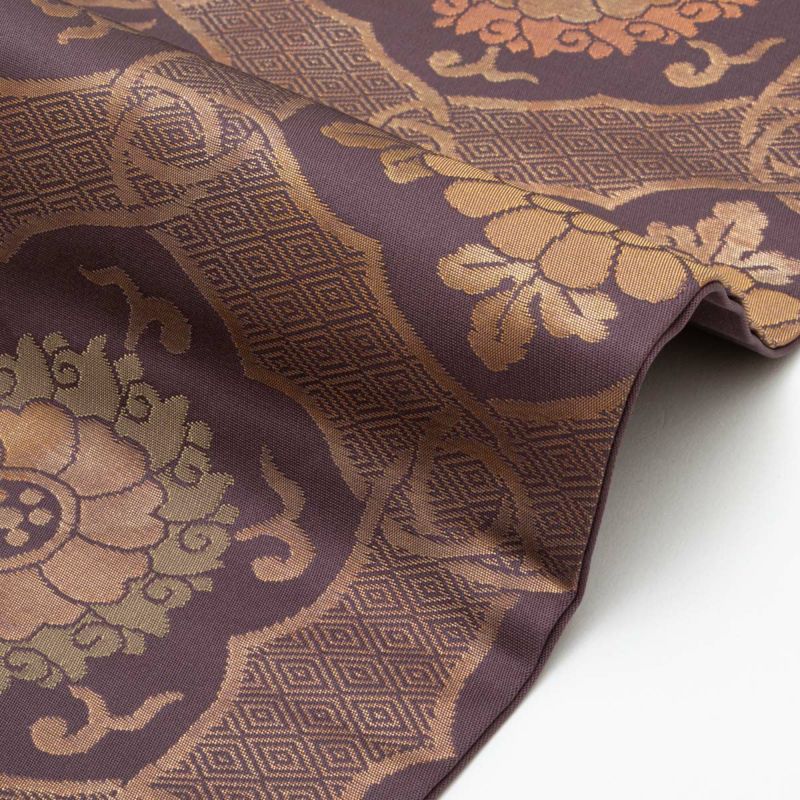 深みのある赤紫を基調に、緑や赤の彩りが華やぎを添え、格調高く気品ある装いを演出します。