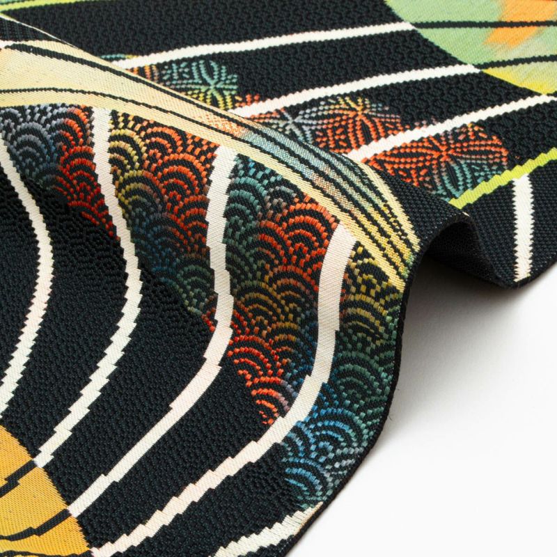 多彩な色合いが織り込まれた文様は、古典的でありながらも華やかさを添え、着姿を引き立てます。