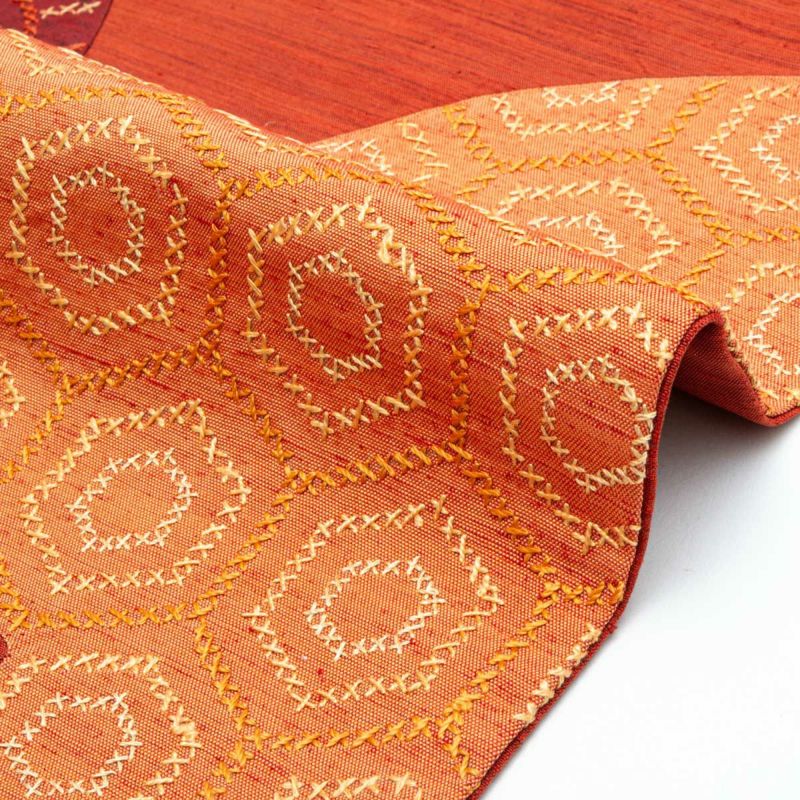 煉瓦色の地があたたかみを感じさせ、上品な中に落ち着いた存在感を放ちます。