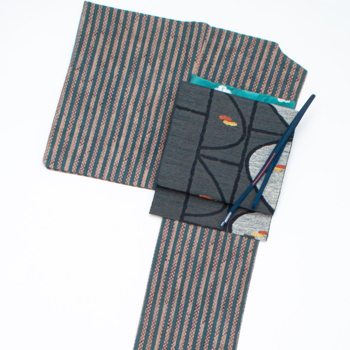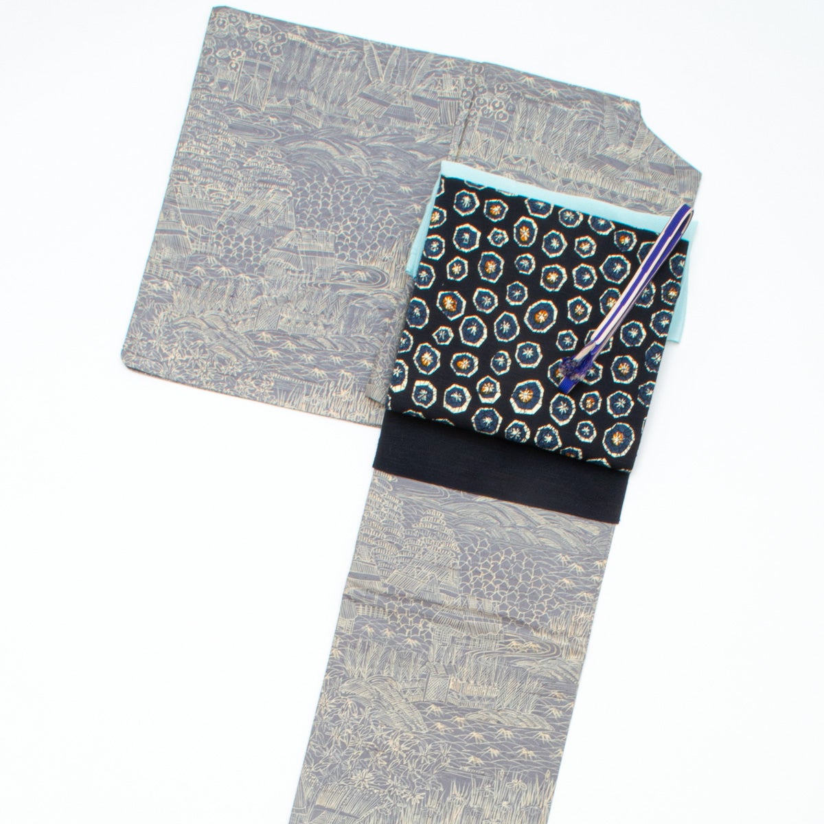他の画像を見る 【背の高い方にもおすすめ!しつけ糸付き!コーディネート】紬 モダン 縞 ダークグレーと名古屋帯 真綿織 丸紋 灰青色 マルチカラー 八寸のコーデ 14 新入荷 当店特別価格 ¥ 44,000 税込 SOLD OUT 詳細を見る お気に入りに登録する
