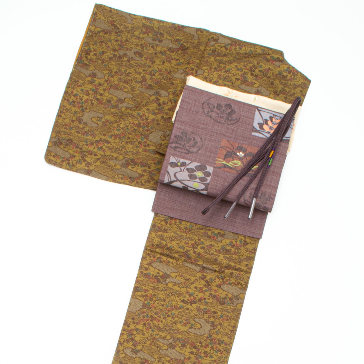 他の画像を見る 【しつけ糸付き!コーディネート】小紋 四季の植物 青海波 カーキ うぐいす茶色と名古屋帯 四角枠に植物 紫色 九寸のコーデ 11 当店特別価格 ¥ 39,050 税込 カートに入れる お気に入りに登録する