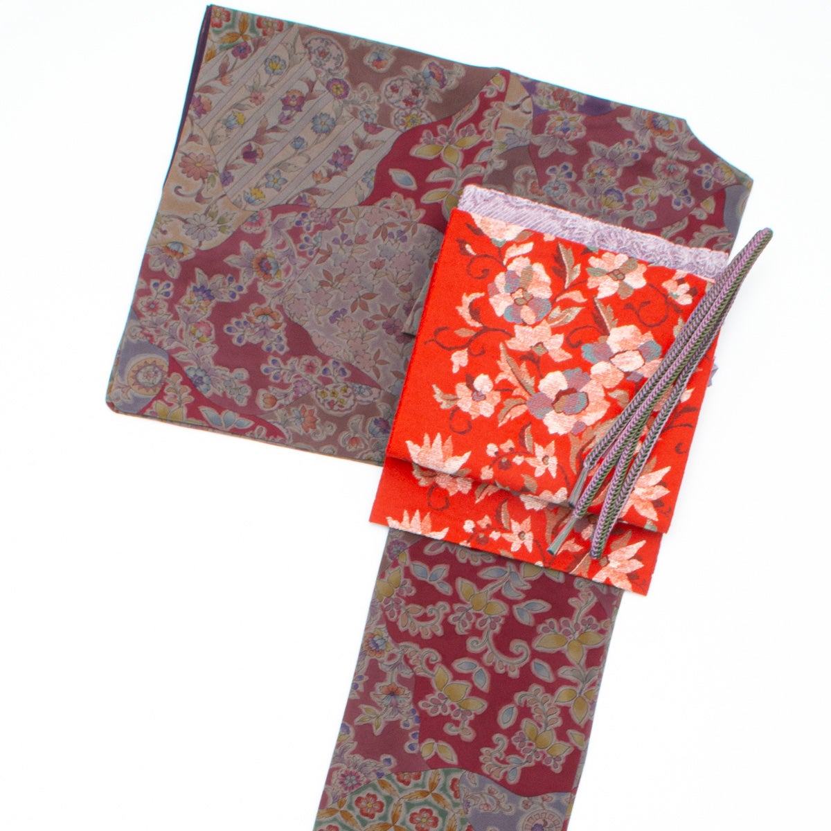 他の画像を見る 【小柄な方へおすすめ!コーディネート】小紋 更紗柄 裂取り ダークな赤色 マルチカラーと名古屋帯 真綿織 花唐草 赤色 八寸のコーデ 10 当店特別価格 ¥ 37,400 税込 カートに入れる お気に入りに登録する