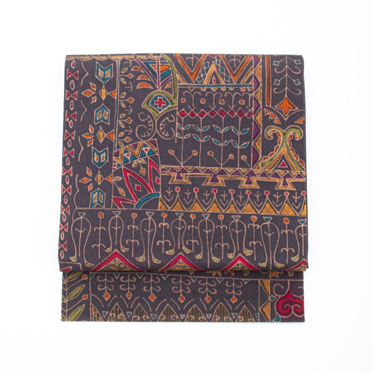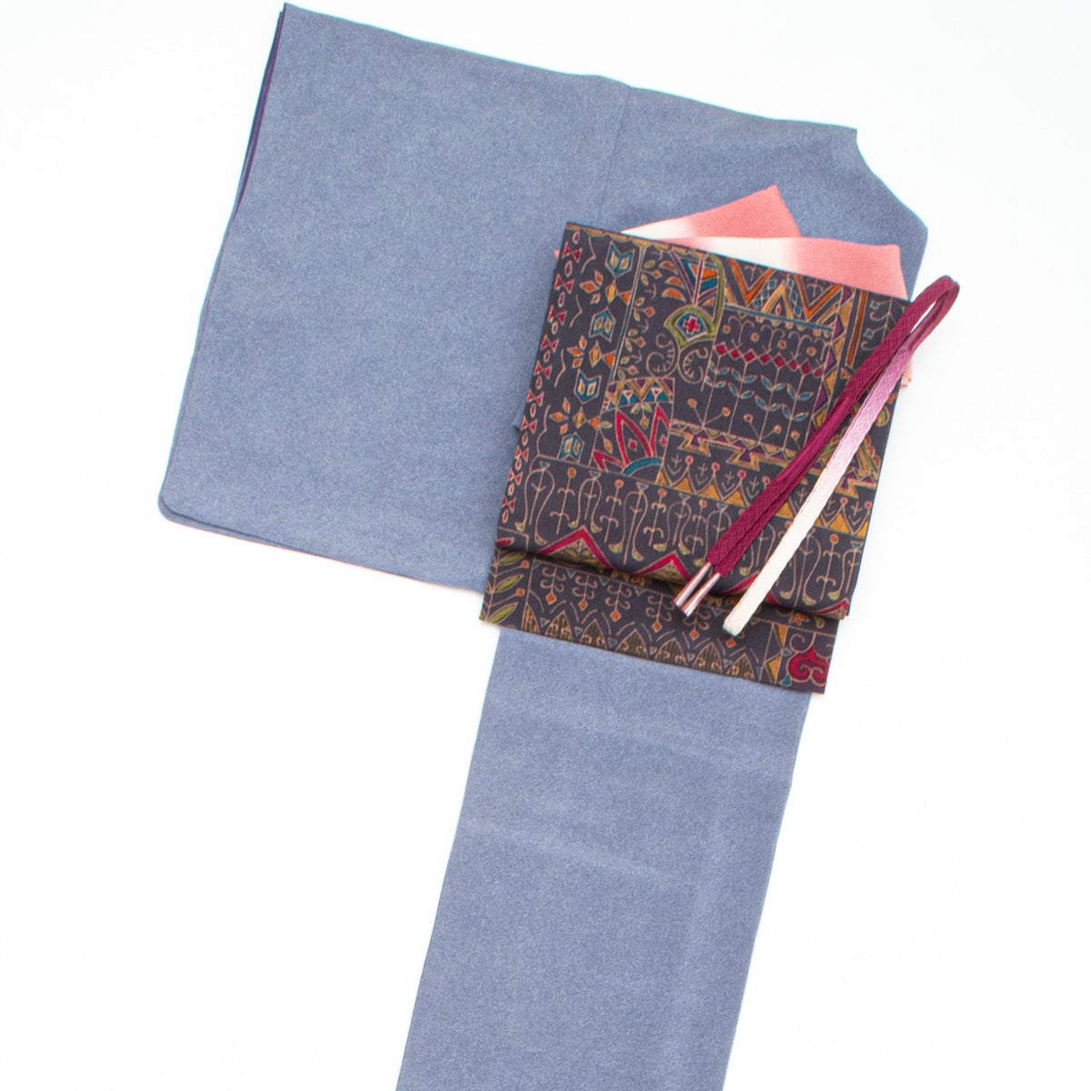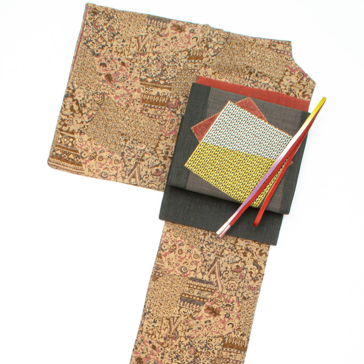 他の画像を見る 【コーディネート】小紋 縮緬 更紗柄 裂取り にぶい灰みの黄 赤紫色と洒落袋帯 モダン四角 灰みの紫 茶 白 赤 黄色のコーデ 14 当店特別価格 ¥ 44,000 税込 カートに入れる お気に入りに登録する
