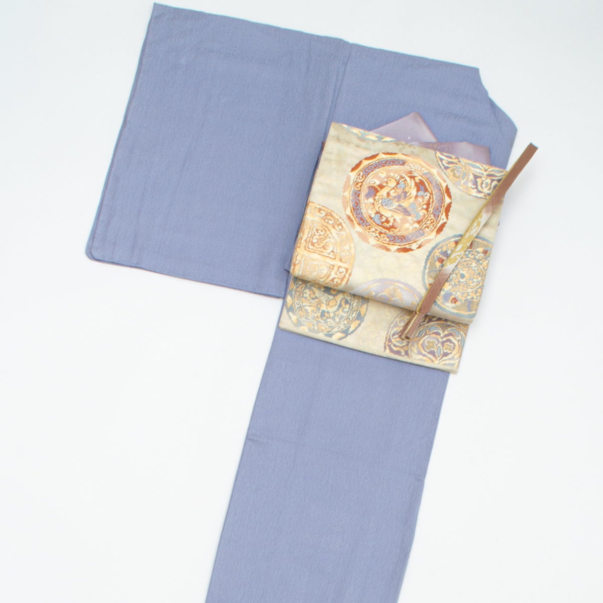 他の画像を見る 【お茶会にもおすすめ!コーディネート】色無地 一つ紋 青紫色と袋帯 未使用 丸紋 黄みのオフホワイト マルチカラーのコーデ 13 新入荷 当店特別価格 ¥ 45,100 税込 カートに入れる お気に入りに登録する