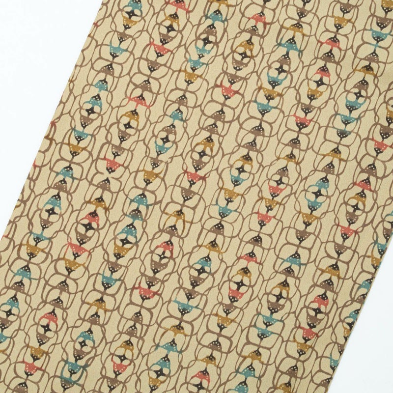 色とりどりの模様が軽やかに映え、上品さの中に温かみを感じる一枚。