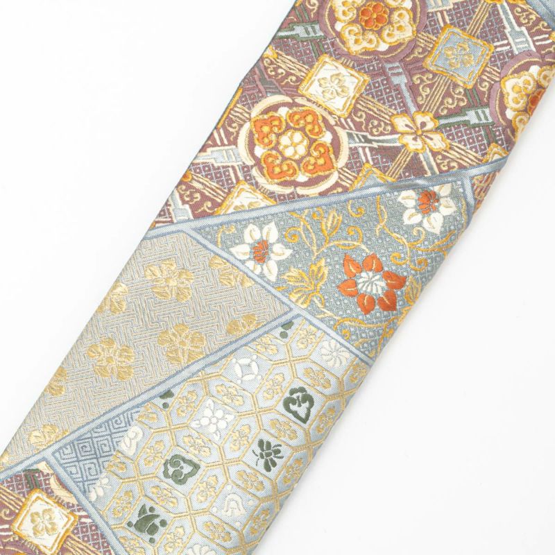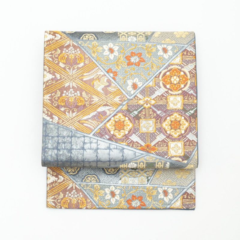 灰みの青を基調に、金や茶色、マルチカラーがほどよい華やかさと深みを添え、格調の中にあたたかみを感じさせます。