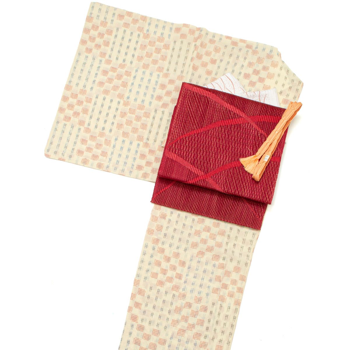 他の画像を見る 【コーディネート】夏着物 小紋 木綿 井桁絣 生成り 赤 黒色と夏名古屋帯 羅 芝草 赤色 八寸のコーデ 47 当店特別価格 ¥ 37,400 税込 SOLD OUT 詳細を見る お気に入りに登録する