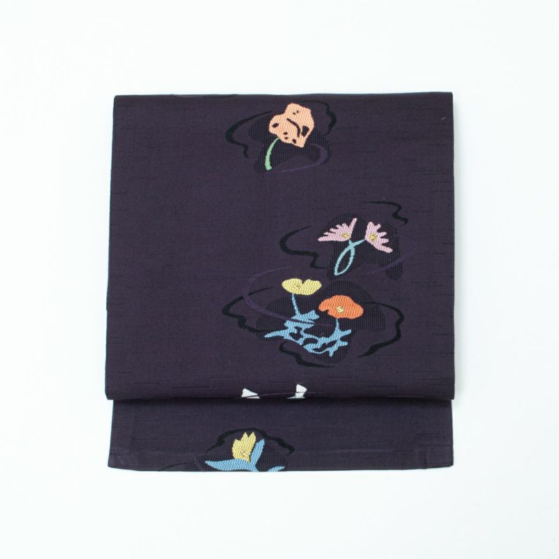 合わせた名古屋帯は、深みのある紫地に花柄が映え、上品で女性らしい印象を添える一本です。