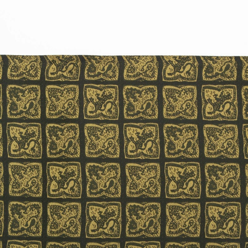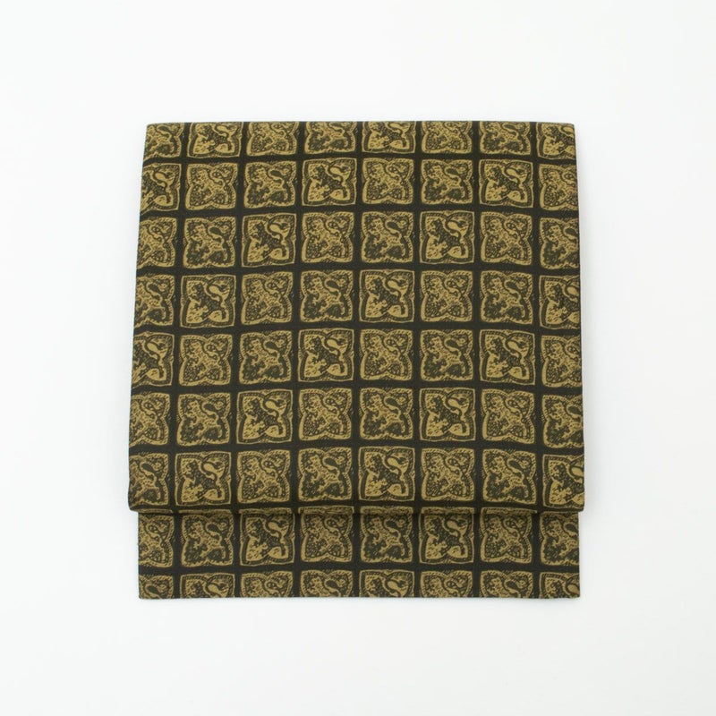 合わせた洒落袋帯は、幾何学文様の中に獅子柄をあしらった意匠です。