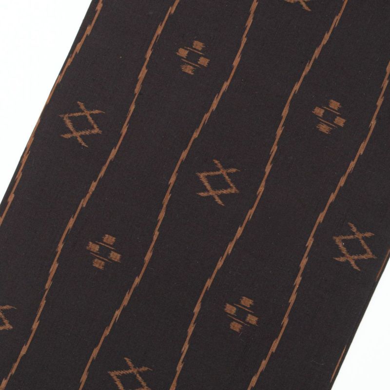 深みのある焦茶色の紬は、越布琉ならではの素朴な風合いと絣の表情が魅力です。
