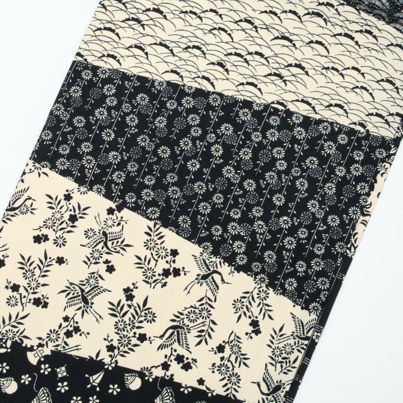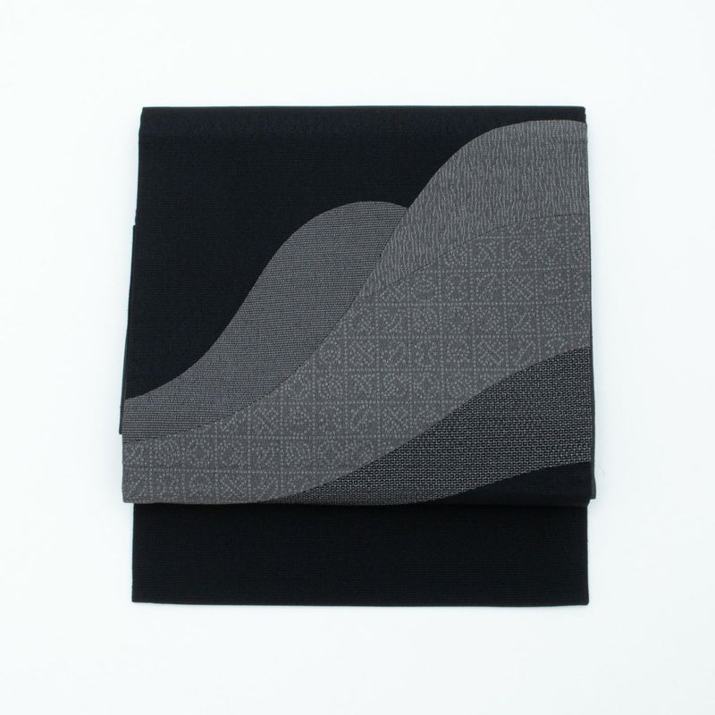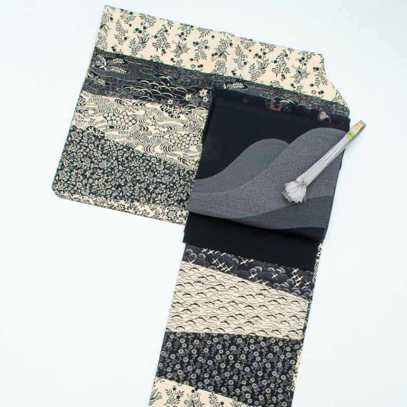 合わせた名古屋帯は、黒地に切り嵌め文様を配したリバーシブル仕様。