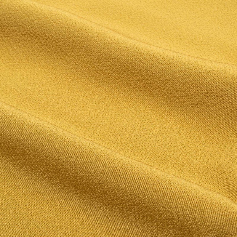 落ち着きのある黄土色が印象的な、一つ紋入りの色無地です。