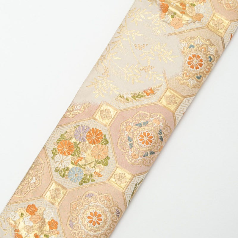 古典文様ならではの格調を保ちながら、全体をやわらかくまとめる、品のある組み合わせです。