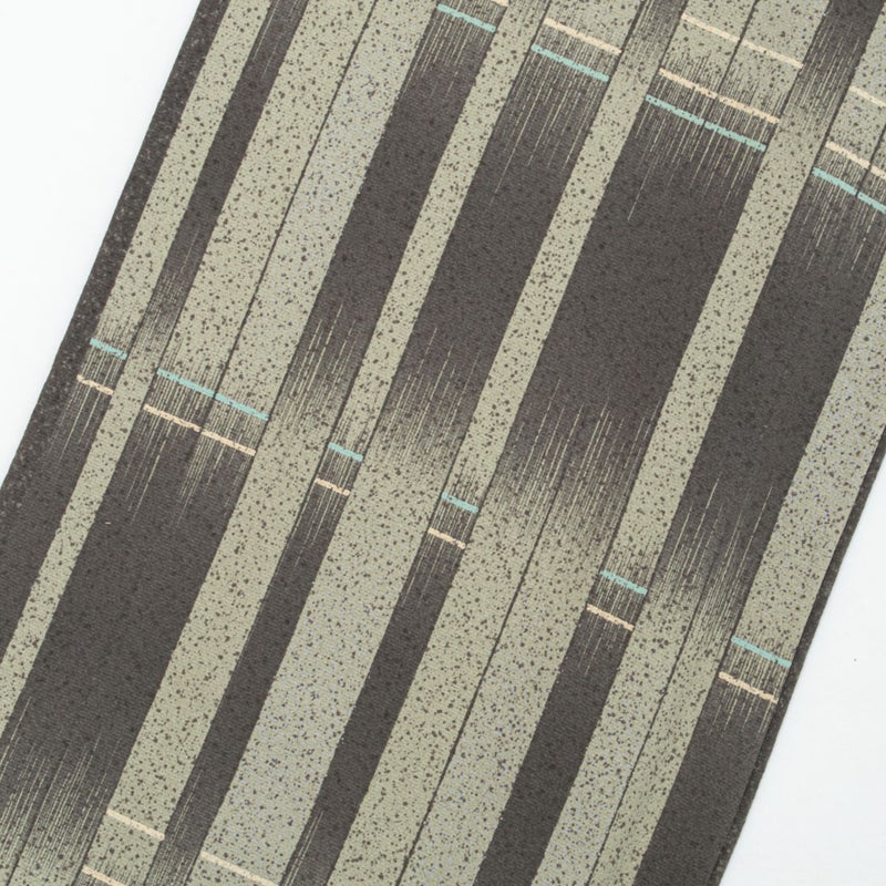 絣柄とモダンな縞を組み合わせた、表情豊かな小紋です。