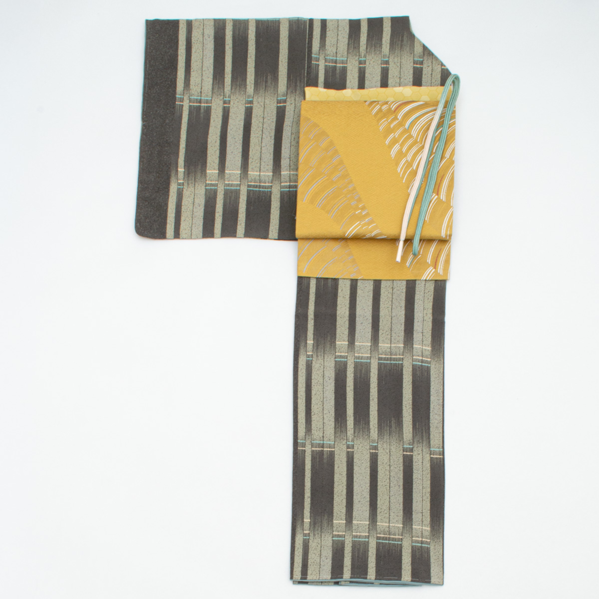 装いに軽やかなアクセントを加え、着姿をいきいきと引き立てるコーディネートです。