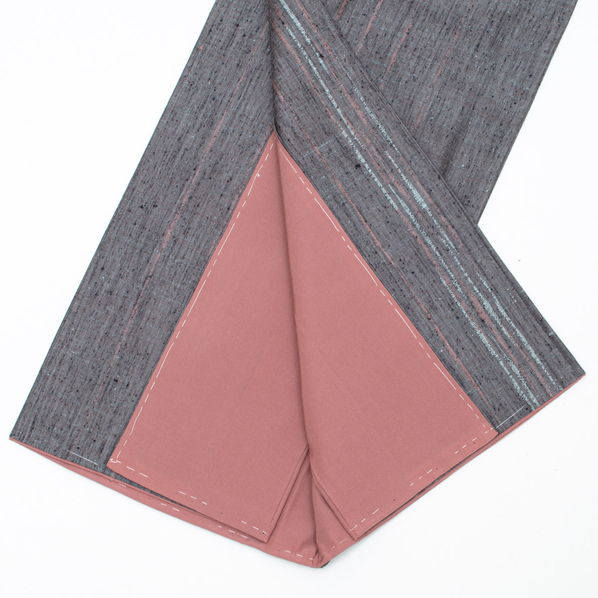 袷 / 広衿 / 正絹 / 八掛の色:明るい灰みの赤色 無地